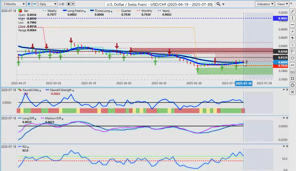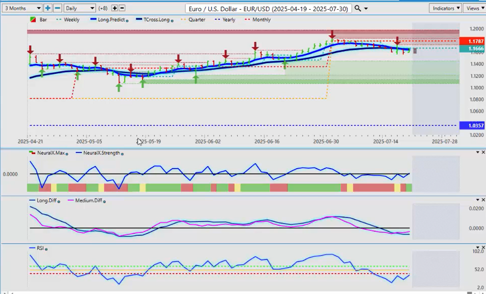 And I do like the position of the predicted neural index. I’ve got my MA diff cross. All of this is warning, guys, of dollar weakness. But there are going to be fundamentals next week that could change that. The ECB, I think Powell is doing a speech on Monday or Tuesday—that’s going to be very volatile because of the conflict between him and Trump.