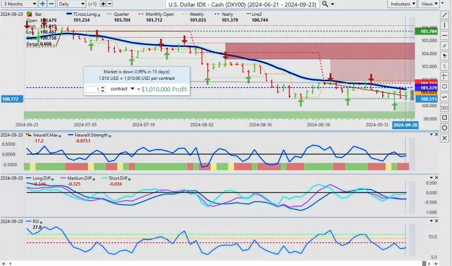 Okay, hello everyone, welcome back! My name is Greg Firman, and this is the Vantage Point AI Market Outlook for the week of September 23, 2024. Now, to get started this week, we will begin where we always do—with that very important US Dollar Index.