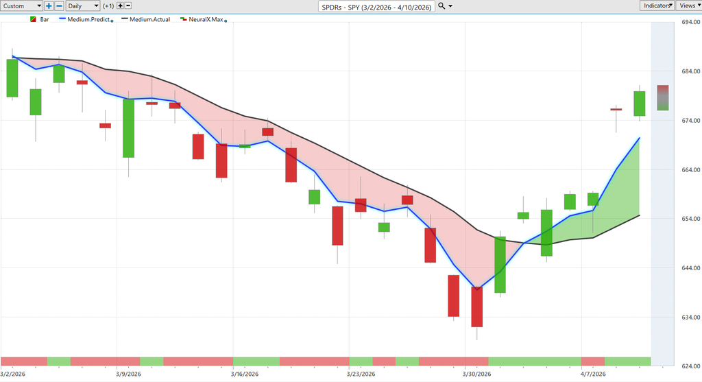 Notice that even before the crossover, the neural index turns bullish, warning traders of upcoming strength. That early signal leads to confirmation, followed by multiple trading opportunities within a single week.