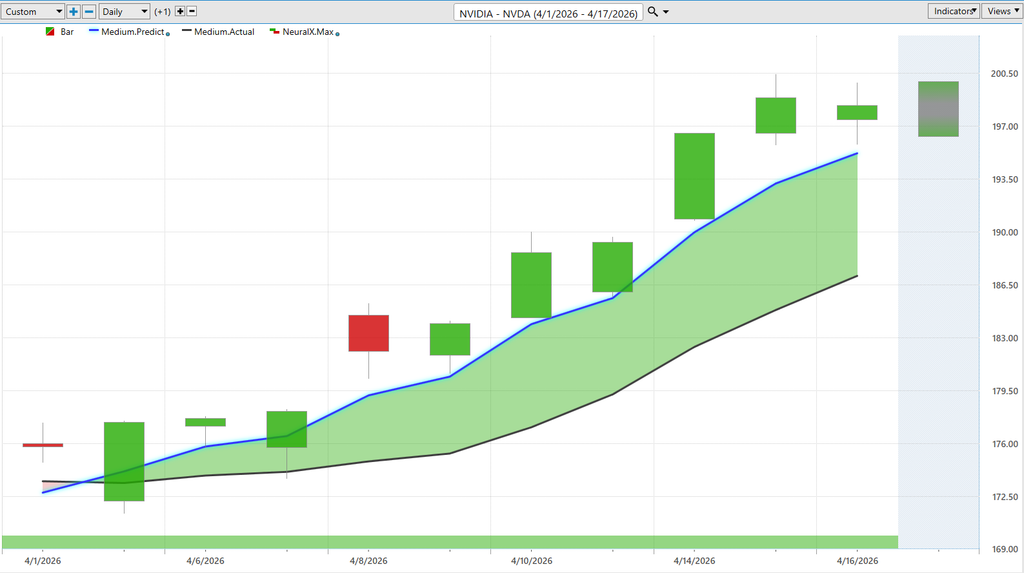 Uh, shares of Nvidia as well. Very simple, blue line over black line. And really the beauty here is that all of these predictive tools, we can actually enter in these predictive indicators into VantagePoint scanning feature called the Intelliscan.