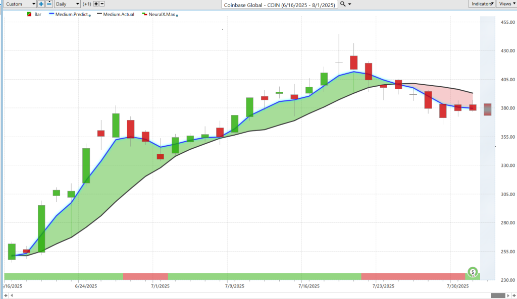 VantagePoint Vantagepoint A.I. Hot Stocks Outlook for August 1, 2025 Stocks $BRO, $COIN, $CAT, $NFLX, $SPOT, $WDC and $IWM