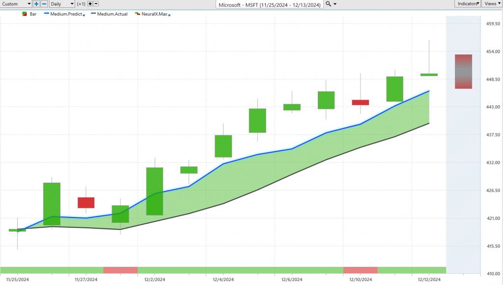 And so, what that means is it’s going to look at dozens of other markets that are known to drive and influence the future price of Microsoft. So, we’re no longer looking at Microsoft in a vacuum, and we’re also not just reconfiguring past price; we’re actually generating predictions with a high level of predictive accuracy. And so, this can be things like, of course, the SPY or the NASDAQ, those major indices, but it’s also going to identify some correlations between other just individual stocks or also things like the currency, right? The value of the dollar index, the value of interest rates in the bond market, even down to things like precious metals or energy markets, or even grains commodities. And so, it takes this global approach, analyzes all this information, and then produces a suite of predictive indicators that traders can use to make much better trading decisions.