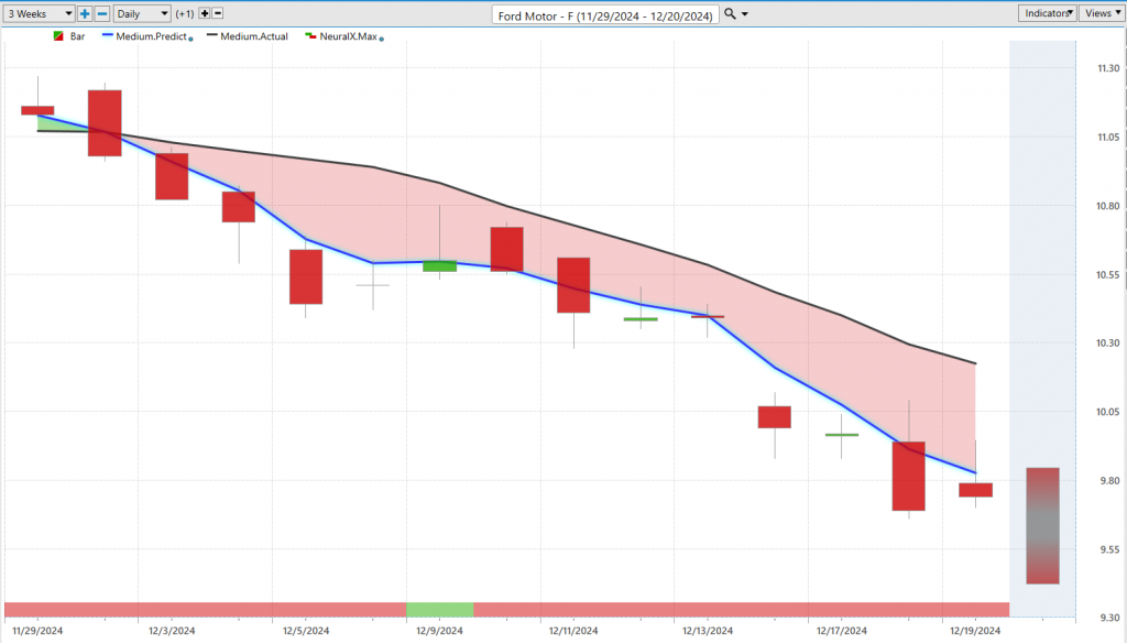 So, another area where we’ve seen just weakness over the past five trading days since the last forecast, and you see an excellent entry as far as getting short on Ford Motor here, and even yesterday, moving to that predicted high and then going lower. And certainly, coming into Friday, we may see some more weakness here, to really round out the end of the week here. So, nice move lower in Ford Motor. Um, and and just identifying again, this weakness that we’re seeing really spread out fairly broadly across the market and even weighing into you know, things like Nvidia and some of these markets again that have performed extremely well. So, another 11% decline over the past 13 trading days.