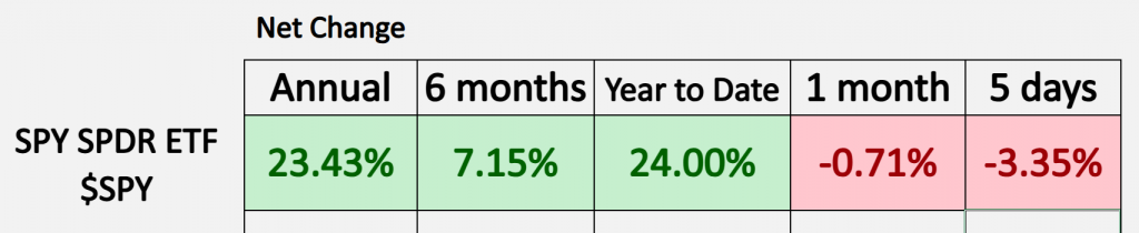Now, as we typically do, we start out with the S&P 500. We’re actually going to take a close look at iwm, so another major index here. But looking at the S&P as we typically do, well, what we can see is that our year-to-date number that was pushing up against 28 is now down to 24. That’s because we’ve seen a very abrupt and aggressive decline in the major indices. So, if you watched last week’s hot stocks outlooks, we talked about how, well, you know, the Dow and the Russell are actually turning lower, and so you might want to be really careful.