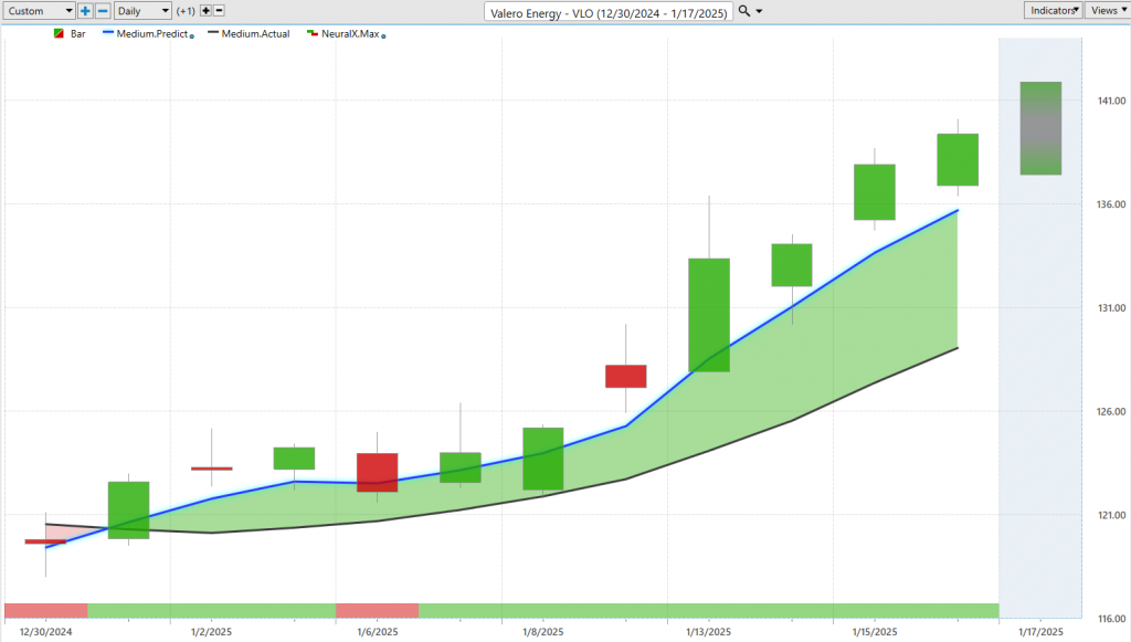 Here’s Valero Energy ($VLO), just continuing on with that theme again, keeping things simple with that blue line crossing above the black line, neural index bullish, and when you start seeing a lot of crossovers in a similar sector, well, that really gives you a clue.