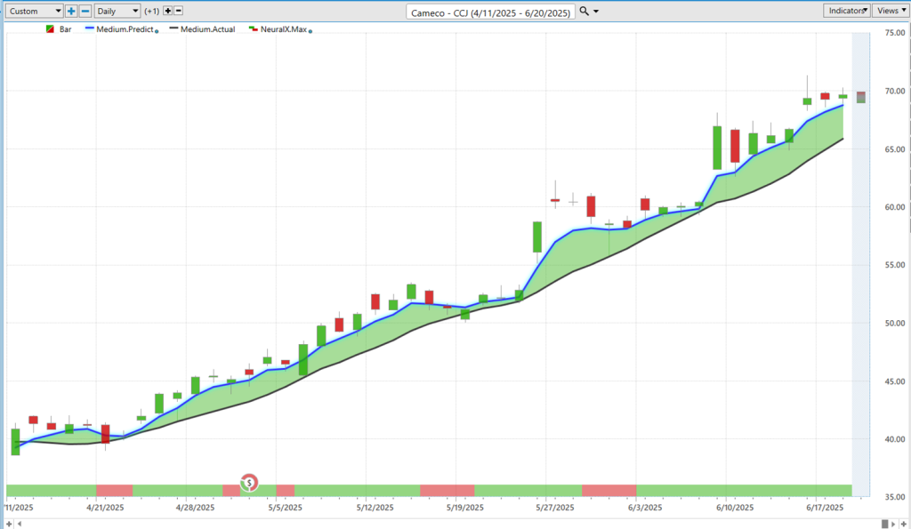 Now, we’ll go ahead and jump right into the charts this week, and we can start out here with shares of Cameco ($CCJ). We’ve seen a lot of interest around, really, energies generally—but also nuclear power. A few weeks ago, we looked at Oklo stock. In this case, for shares of CCJ and CAMECO, this works the same for any forecast, right?