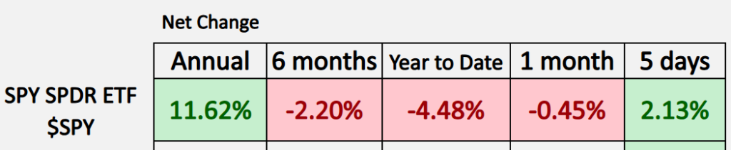 So very, very bullish for the broader markets, and signaling that, yeah, this week you might want to look to take some long positioning. Certainly, this did very well after earnings, leading to a pop in the stock price. We got an overall move — about 10% just over the past five trading days.
