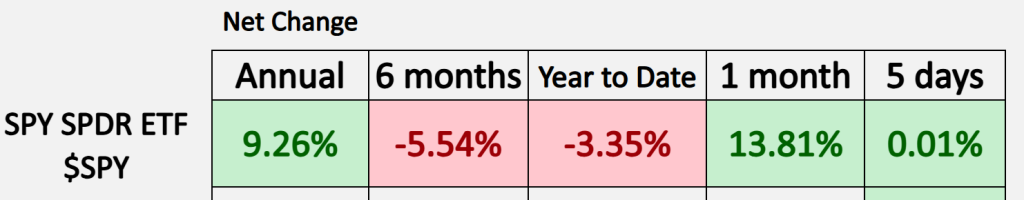 Now, as we typically start out, we tend to take a look here at the S&P 500, just to get a sense of where, broadly, equity prices have been. A couple things really stand out here: we can see year to date we’re still down about 3%, but if we went back an entire year, we’d only be up 9%. But if we went back 30 days—because of all this news and volatility around tariffs—well, you have about 14% just over the past 30 trading days.