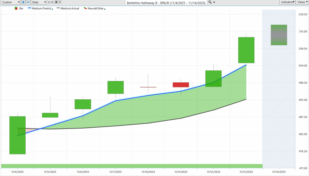 And so really nice opportunity in Berkshire Hathaway. And I bring this through just because we have a lot of volatility in markets and very few names that are in strong uptrends and showing all these predictive indicators getting very bullish. You see Berkshire up about 5% now in the past seven trading days.