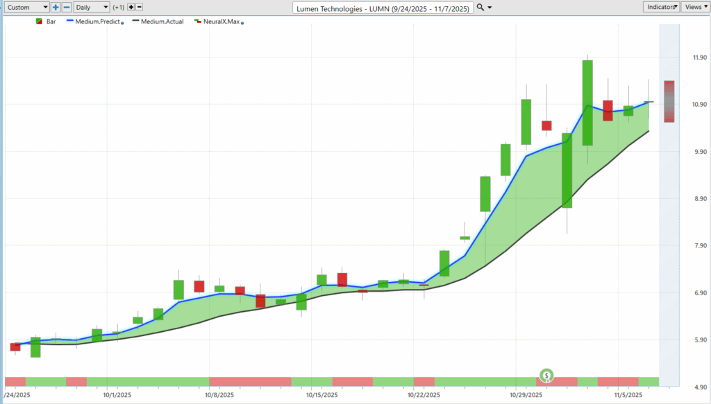 Uh, and overall here now Lumen (LUMN) just over the past month of trading here, about a month and a half, about 87% move higher from those initial predicted lows.