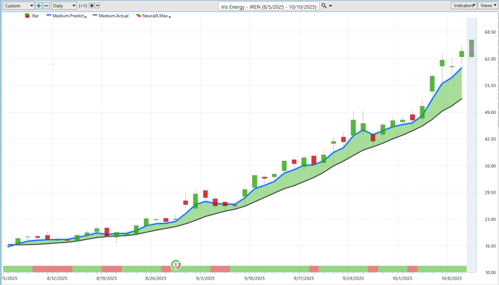 Uh one of those areas where we’ve seen a lot of bullishness is uh Bitcoin miners and a lot of these data uh uh company stocks here. So here we have Iris Energy, uh really going back uh quite a long period of time, a couple of months here as far as individual trading days.