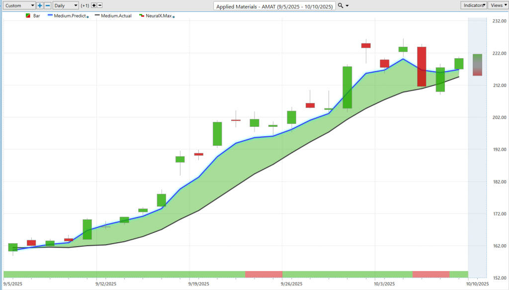 Hello again traders, and welcome back to the hot stocks outlook for October 10th, 2025. Hope you all have had a nice week out there in the financial markets. And as always, we’re here to take a look at the most recent Vantage Point A.I. predictive forecast.
