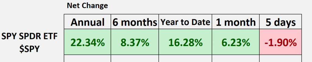 As we typically do, we’d like to take a look at SPY or the S&P 500 ETF. What we can see here is that, actually, over the past 5 days—and you know we had the Labor Day holiday, so it’s sort of a short week from the last Hot Stocks Outlook—we’re down about 1.9% over the last five trading days, and we are starting to see volatility pick up. Last week, we recently came close to those all-time highs in the S&P, and now we’re starting to dip back lower, so you really want to be careful out there. This is where Vantage Point’s forecast can really help traders identify safer places to trade and also how to manage those opportunities as we progress forward through time.