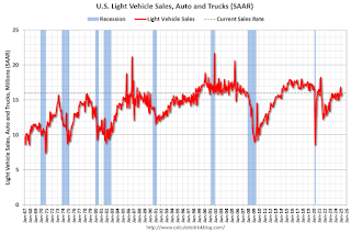 This graph shows light vehicle sales since 2006 from the BEA (blue) and Wards’ estimate for February (red).