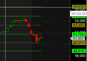 Intraday traders should watch the first 15 minutes’ high and low to capture the day’s trend. As long as 50,653 is held and the price remains above the 100 EMA, we could see sharp short covering towards 51,768/52,000.