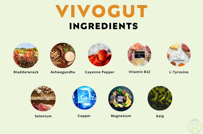 - Supports Smooth Digestion and Nutrient Absorption: VivoGut aids digestion by enhancing digestive processes, helping break down food efficiently. Ingredients like kelp and L-Tyrosine support enzyme activity and protein synthesis, improving the body’s ability to absorb and utilize vital nutrients.