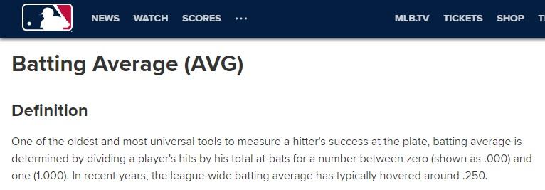 So the Batting Average = .250. That’s pretty shit to the common man, but as the great Hank Aaron said, “My motto was always to keep swinging. Whether I was in a slump or feeling badly or having trouble off the field, the only thing to do was keep swinging.” Aaron’s lifetime batting average was .305, and he is considered one of the best baseball players of all time.