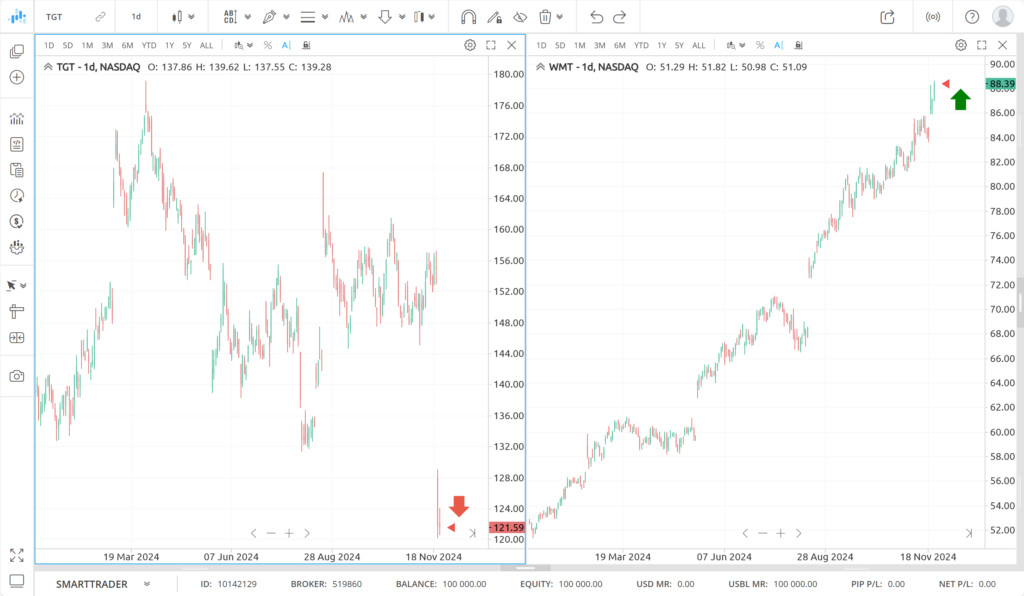 Walmart’s rise and Target’s fall may foreshadow challenges ahead, with potential bearish implications for even the most resilient players in the market.
