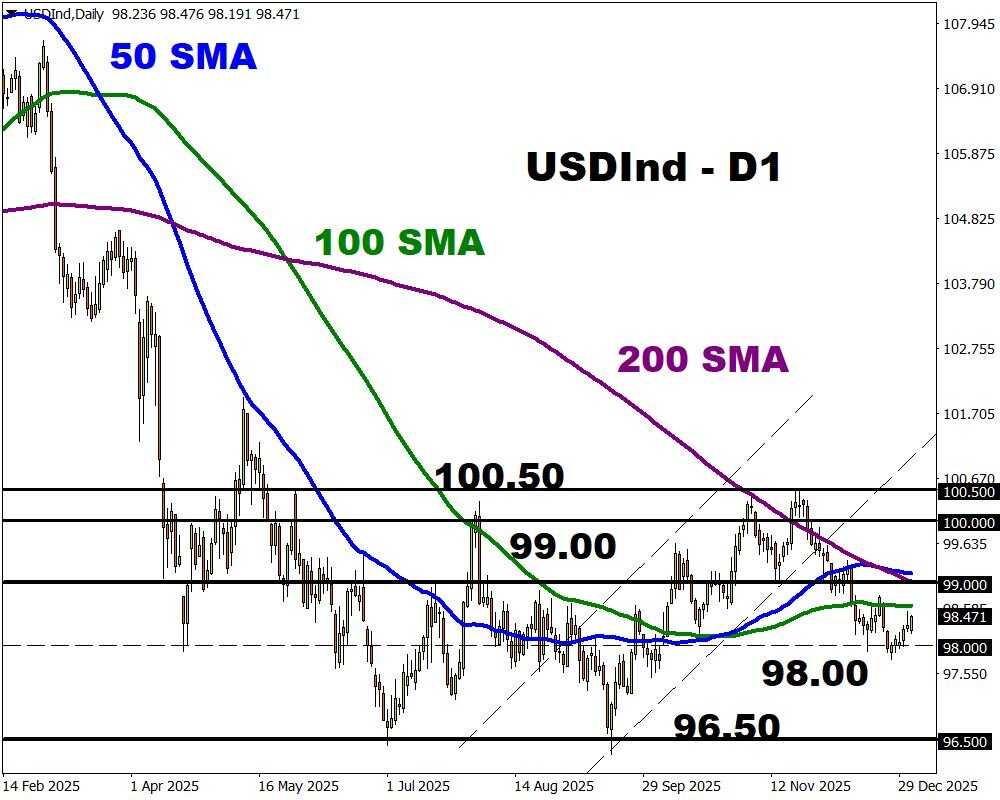 - USDInd ends 2025 ↓ 9.4% lower, biggest drop since 2017