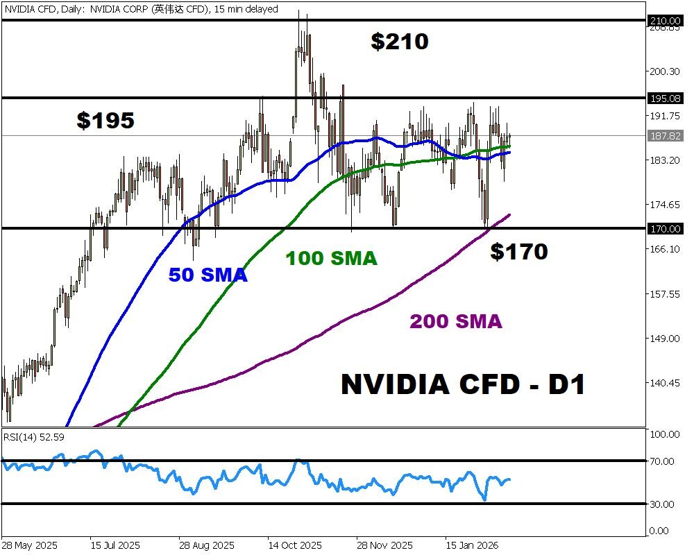 - Weakness below the 100-day SMA could trigger a decline back toward the 200-day SMA and $170.