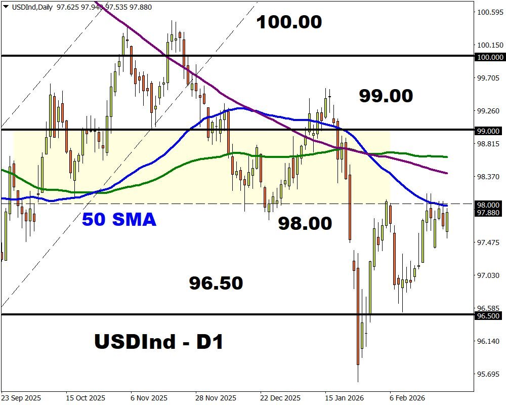 It’s been a choppy week for the dollar with prices repeatedly testing resistance at 98.00.