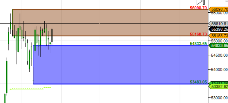 56000 is Monthly Resistance zone 54500 is Monthly Support zone.