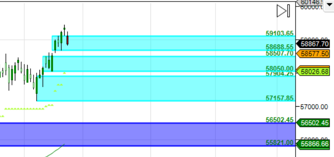 59375 is Monthly Resistance zone 56978 is Monthly Support zone.