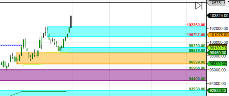 MCX GOLD Supply Demand Chart : Demand in range of 102250-10200 , Supply in range of 10450-10500