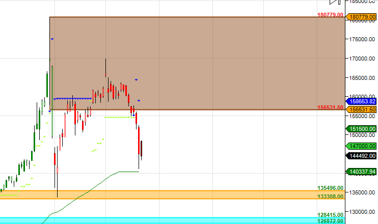 MCX GOLD Supply Demand Chart : Demand in range of 142-143 K , Supply in range of 150-151 K