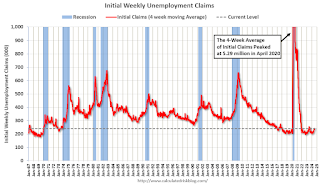 The dashed line on the graph is the current 4-week average. The four-week average of weekly unemployment claims increased to 240,750.