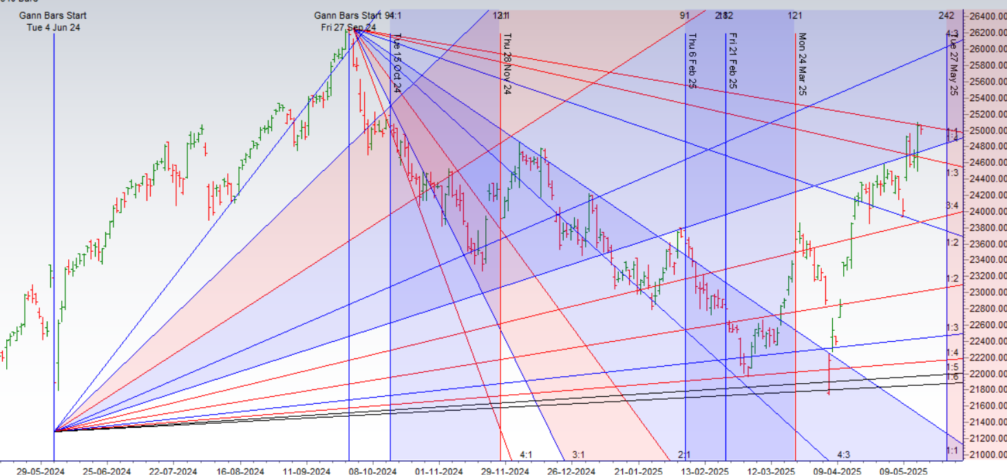 As we step into a crucial Gann and Astro cycle window, the stars are once again aligning to trigger volatile market behavior. With Sun shifting to Gemini and Mercury engaging in multiple volatile aspects, both Nifty and Bank Nifty could experience trend shifts, sector rotation, and sharp intraday swings.
