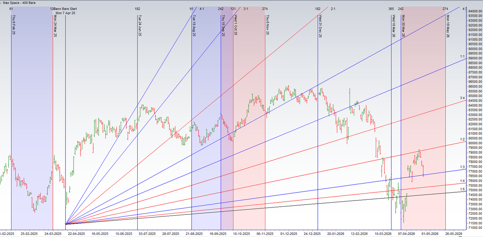 Sensex is back to its 1×3  gann angle support holding same rally towards 77/78K
