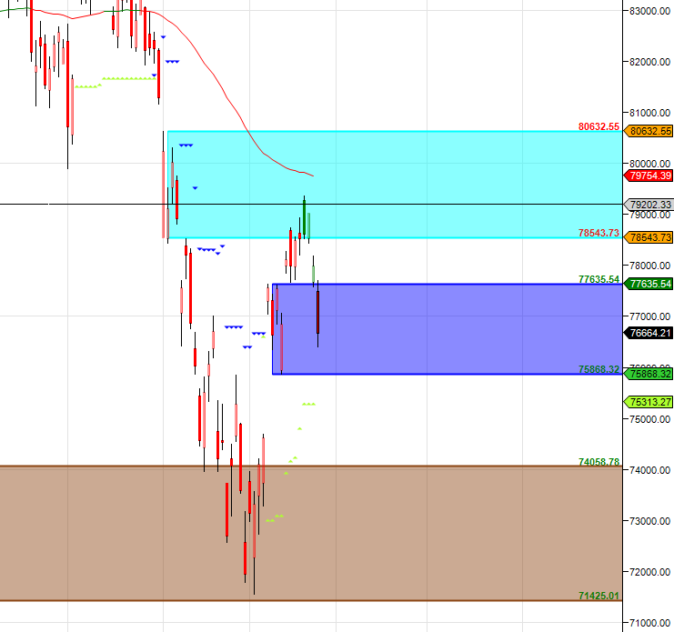 77777 is Monthly resistance  zone 76000  is Support zone.