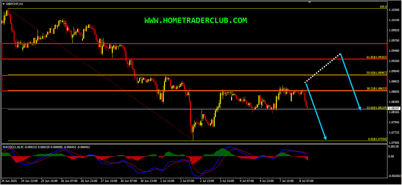 GBPCHF – My idea here was “On the H1 chart, we could see that currently we have a strong bearish momentum here as well. Also while measuring this strong bearish move we have two key resistance zones that has formed. The first key resistance zone is formed based on the 38.2%(1.08633) – 50%(1.08967) Fibonacci retracement levels of the strong bearish move. The second key resistance zone is formed based on the 61.8%(1.09302) Fibonacci retracement level of the strong bearish move. Until both these key resistance zones shown in the image below (marked in red) holds my short term view remains bearish here and I expect the price to move lower further after pullbacks”.