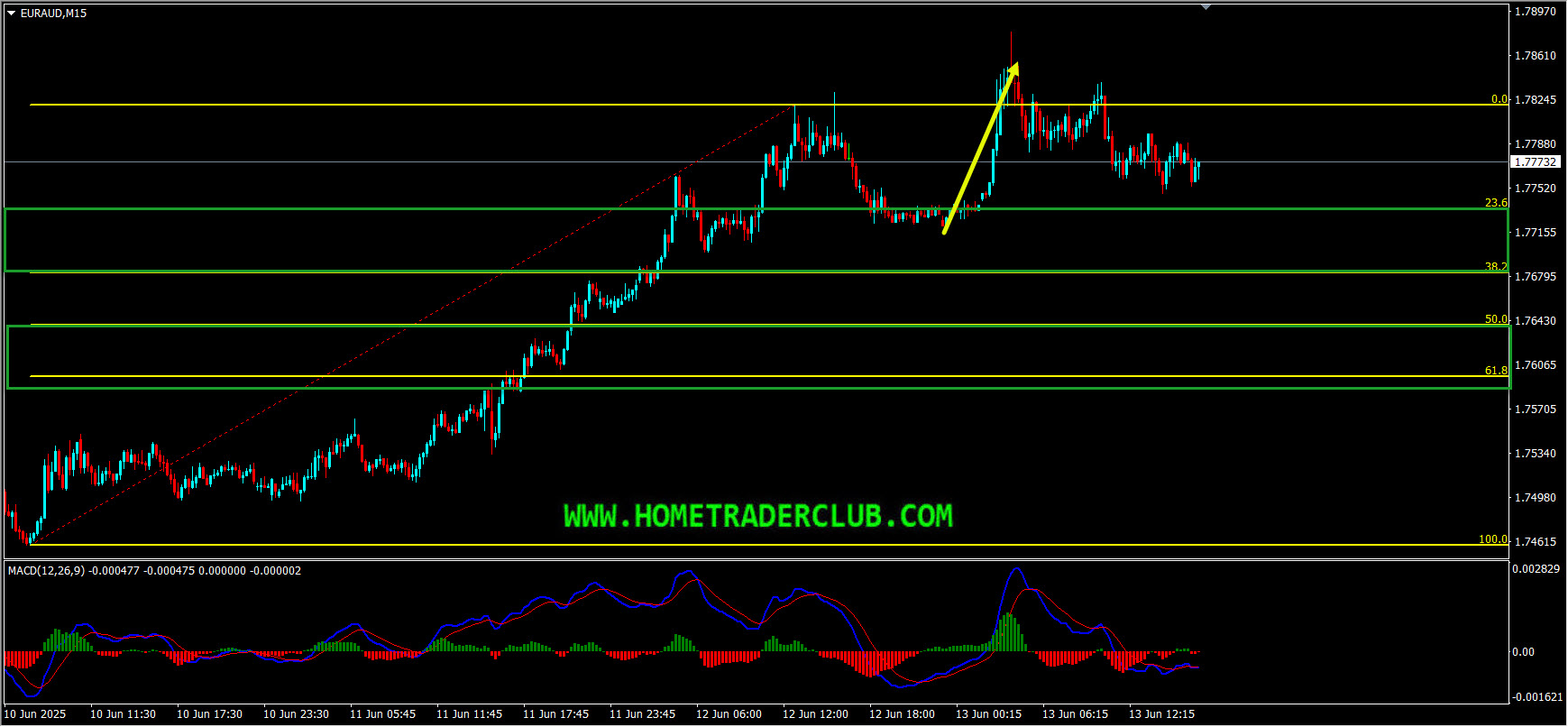 EURAUD – My idea here was “On the M15 chart, we have a strong bullish momentum and also currently there are no signs opposing this short term bullish view. Also while measuring this strong bullish move we have two key support zones that has formed. The first key support zone is formed based on the 23.6%(1.77110) – 38.2%(1.76633) Fibonacci retracement levels of the strong bullish move. The second key support zone is formed based on the 50%(1.76248) – 61.8%(1.75863) Fibonacci retracement levels of the strong bullish move. Until both these key support zones shown in the image below (marked in green) holds my short term view remains bullish here and I expect the price to move higher further after retraces”.