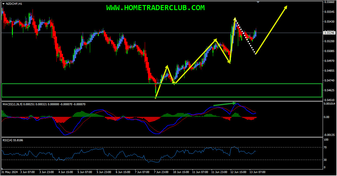 NZDCHF – My idea here was “On the H4 chart, based on the Heikin Ashi candles we can see that currently, we have strong bullish bodies in upward moving market conditions so it basically reflects a bullish environment. Also, the price which is moving higher has created a bullish trend pattern in the form of three higher highs, higher lows, we may consider this as another evidence of bullish pressure. Generally, after a bullish trend pattern, we may expect corrections and then potential continuation higher. Also, we could see that the price which is moving higher has created higher highs based on the MACD indicator, which is a sign of gaining momentum towards the bullish side. In addition to this, currently there are no signs opposing this short term bullish view. So everything looks good here for the bulls and until the strong support zone (marked in green) shown in the image below holds my short-term view remains bullish here and I expect the price to move higher further after pullbacks”.