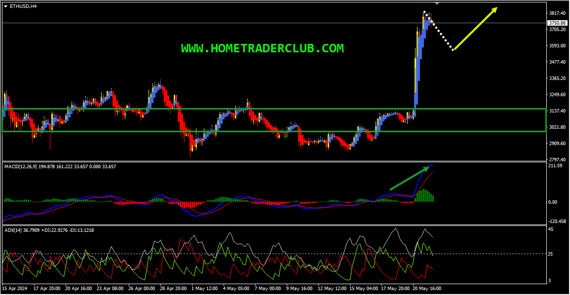 Ethereum – My idea here was “On the H4 chart, currently we have a strong bullish momentum and based on the Heikin Ashi candles we can see that currently, we have strong bullish bodies in upward moving market conditions so it basically reflects a strong bullish environment as well. In addition to this, we could see that the price which is moving higher has created higher highs based on the MACD indicator, which is a sign of gaining momentum towards the bullish side. In addition to this, the ADX indicator gave a bullish signal here at the cross of +DI (green line) versus -DI (red line) and the main signal line (silver line) reads value over 25, we may consider this as yet another evidence of bullish pressure. Currently, it looks like a correction is happening, Also we had a strong resistance zone that have formed and the price which is moving higher has broken above this zone and is holding above it. After the breakout, this strong resistance zone is acting as a strong support zone for us. So everything looks good here for the bulls and until the strong support zone (marked in green) shown in the image below holds my short-term view remains bullish here and I expect the price to move higher further after pullbacks”.