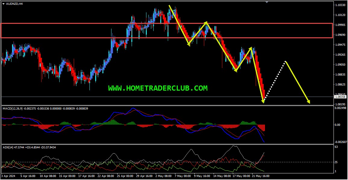 AUDNZD – My idea here was “On the H4 chart, currently, we have a strong bearish momentum and the price which is moving lower has broken below a strong support zone and is holding below it, we may consider this as evidence of bearish pressure. After the breakout, this strong support zone is acting as a strong resistance zone for us. Also, the price which is moving lower has created a bearish trend pattern in the form of three lower highs, lower lows which we may consider as evidence of bearish pressure. Generally, after a bearish trend pattern, we may expect corrections and then further continuation lower. Also, based on the Heikin Ashi candles we can see that currently, we have strong bearish bodies in downward moving market conditions so it basically reflects a bearish environment. In addition to this, the ADX indicator gave a bearish signal here at the cross of -DI (red line) versus +DI (green line) and the main signal line (silver line) reads value over 25 which we may consider as yet another evidence of bearish pressure. So the bottom line here is that, everything looks good here for the bears and I expect the price to move lower further in the short term after pullbacks until the strong resistance zone (marked in red) shown in the image below holds”.