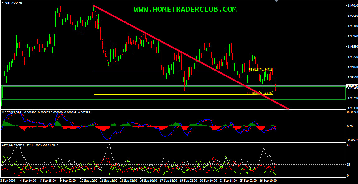 GBPAUD – My idea here was “Looking at the H1 chart, we could see that the price which was moving lower, reached a key support zone that has formed based on the 100%(1.93906) Fibonacci expansion level of the first wave. The price respected this key support zone, and is currently bouncing higher from this zone. Also, the price has broken above the most recent downtrend line and is currently holding above it, we may consider as evidence of bullish pressure. In addition to this, the ADX indicator gave a bullish signal here at the cross of +DI (green line) versus -DI (red line) and the main signal line (silver line) reads value over 25, we may consider this as yet another evidence of bullish pressure. Also, currently there are no signs opposing this short-term bullish view. So everything looks good here for the bulls and until the key support zone (marked in green) shown in the image below holds my short-term view remains bullish here and I expect the price to move higher further”.