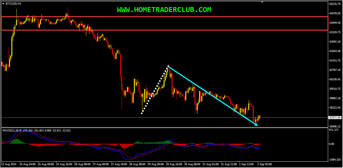 Bitcoin – My idea here was “On the H1 chart, currently, we have a strong bearish momentum and the price which is moving lower has broken below a strong support zone and is holding below it, we may consider this as evidence of bearish pressure. After the breakout, this strong support zone is acting as a strong resistance zone for us. Also, the price which is moving lower has created a bearish trend pattern in the form of three lower highs, lower lows which we may consider as another evidence of bearish pressure. Generally, after a bearish trend pattern, we may expect corrections and then further continuation lower. Currently it looks like a correction is happening. Also, based on the Heikin Ashi candles we can see that currently, we have strong bearish bodies in downward moving market conditions so it basically reflects a bearish environment. In addition to this, the ADX indicator gave a bearish signal here at the cross of -DI (red line) versus +DI (green line) and the main signal line (silver line) reads value over 25 which we may consider as yet another evidence of bearish pressure. So the bottom line here is that, everything looks good here for the bears and I expect the price to move lower further in the short term after pullbacks until the strong resistance zone (marked in red) shown in the image below holds”.