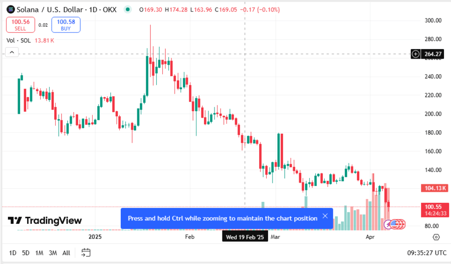 SOL’s substantial price declines worsened following the recent pronouncement of US tariffs. The rise in trade disputes prompted traders to move money away from riskier assets, including virtual currencies like SOL, in preference for safer investments.
