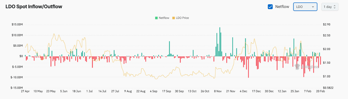 Finally, the volatility of LDO has remained elevated, with fluctuations closely tracking price movements over time. On 17 February, volatility stood at 122.06% – A sign of persistent market uncertainty.