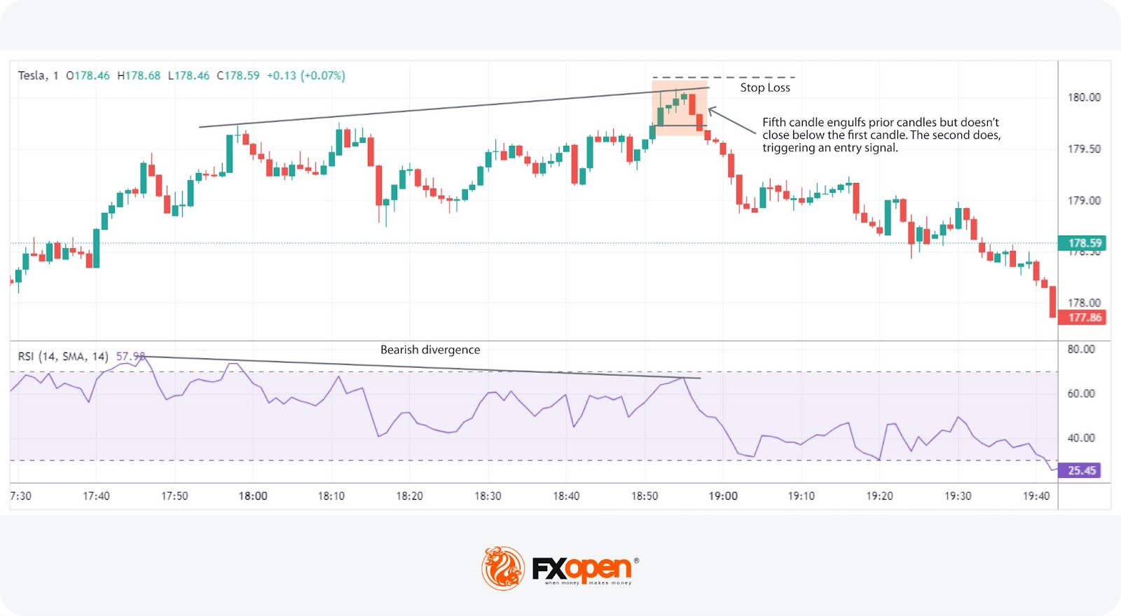 - Fourth: A smaller bearish candle, hinting at a possible reversal.