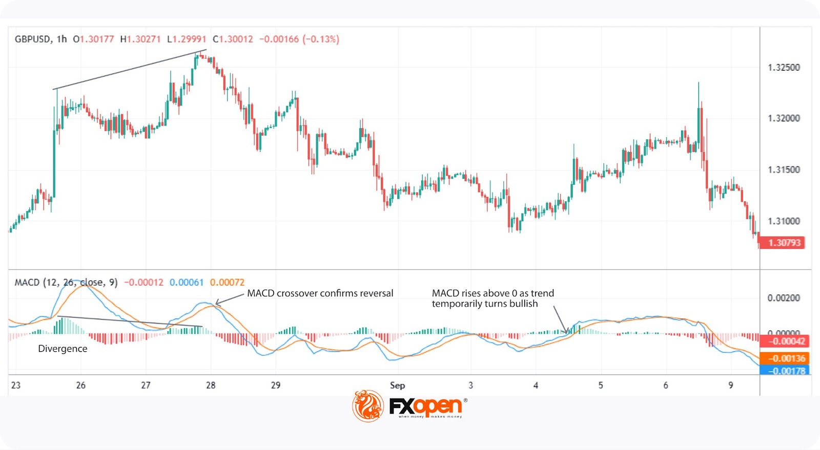 Another key feature of MACD is divergence. If the price moves in one direction but the MACD moves in the opposite direction, it may signal a potential trend reversal. For instance, when the price is making higher highs but the indicator is making lower highs, it could indicate that upward momentum is weakening.