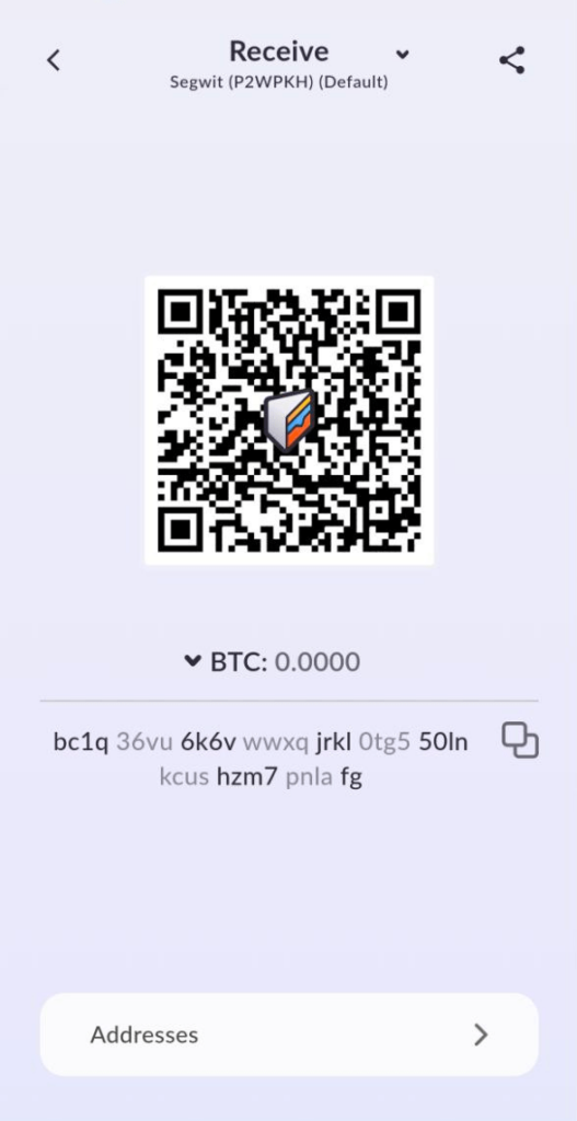 Your crypto wallet will display a string of characters, which is your personal Bitcoin address. You can just click “copy”. It usually comes with a QR code for easy scanning.