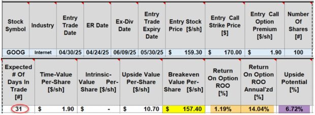 Real-life example with Alphabet, Inc. (Nasdaq: GOOG): Option-Chain on 4/30/2025