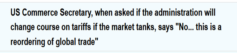 Given the size of the reciprocal tariffs and the delay in implementing them could be taken as a sign the White House is leaving open a window to negotiate. What I mean by negotiate is for a country to lower tariffs on U.S. goods in return for lower reciprocal tariffs.