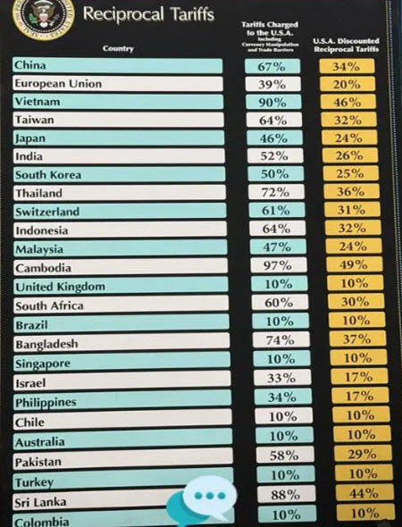 I said to myself “WTF.” 20% on the EU,34% on China, 26% on India, just to name a few. This was in addition to the 25% steel, aluminum and auto tariffs.