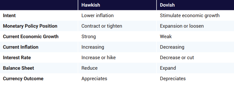 Here’s a quick primer on the difference between hawkish and dovish policies: