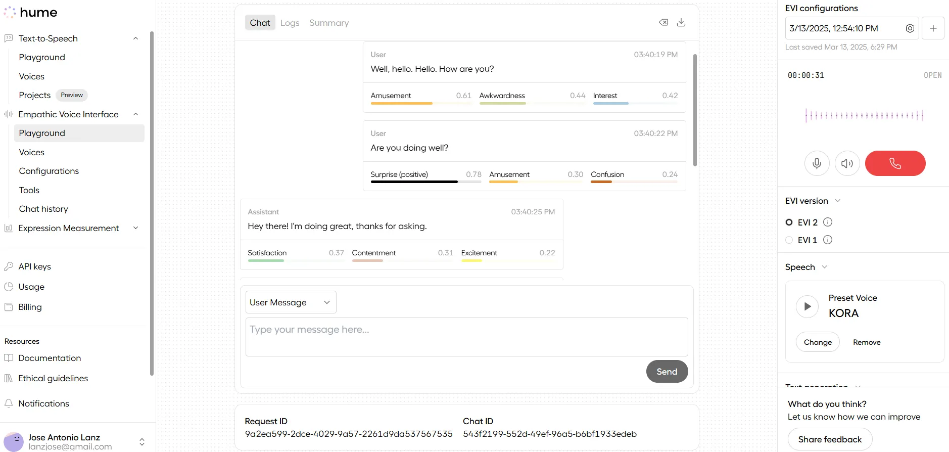 Hume AI interface
